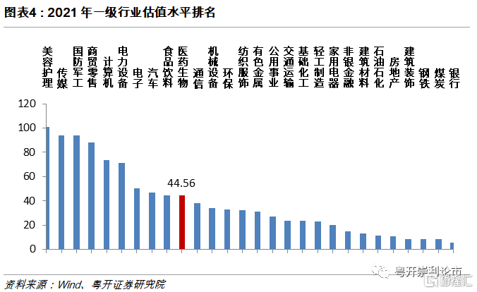 2021年醫藥生物板塊估值處於申萬一級子板塊中上水平,但較2020年和2021年初明顯回落。截至12月1日,醫藥板塊整體估值(TTM整體法,剔除負值)爲44.56倍,在28個一級子板塊中處於中等偏上的水平。但板塊估值處於近五年來歷史中下水平,較2020年和2021年初明顯回落。