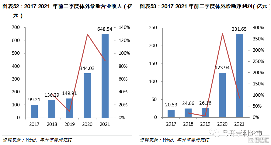 體外診斷板塊2021年實現營業收入648.54億元,同比增長88.51%;實現淨利潤231.65億元,同比增長86.89%。近年來,隨着我國逐漸步入老齡化社會,以及分級診斷和國產替代的推進,我國體外診斷行業快速發展,市場需求持續增長。2020年,新冠疫情的爆發進一步加強了居民的衛生意識,帶來了體外診斷需求的釋放。但目前,疫情的影響正持續減小,部分指標已迴歸疫情前。