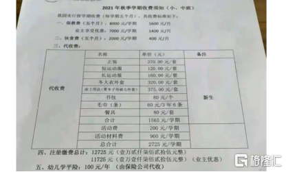 有雲南網友曬出一張今年幼兒園中小班秋季學期收費須知。上面顯示,收費項目包括保教費、夥食費、服裝、書包、毛巾、餐具、活動費、材料費等代收費用一個學期下來要一萬多,這簡直比大學的學費還貴。