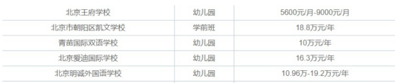 這還是普通私立幼兒園,如果上的是國際幼兒園,學費就更貴了。有北京網友統計了幾家國際幼兒園的收費標準,每年的學費動輒5-20萬元,對家庭經濟實力是一個不小的考驗。