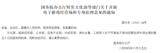 2000年6月20日,文化部、公安部、信息產業部多部門聯合下發《關於開展電子遊戲經營場所專項治理的意見》,一紙禁令暫停了所有關於遊戲機的生產、經營和銷售活動。