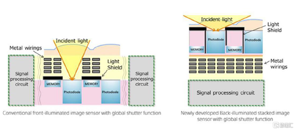 圖表8:前照式與堆疊背照式方案結構對比