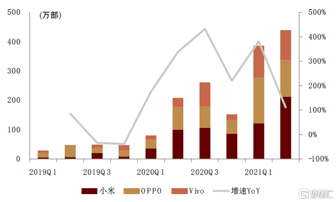 圖表19:米OV高端機型(600美元以上)出貨量及增速