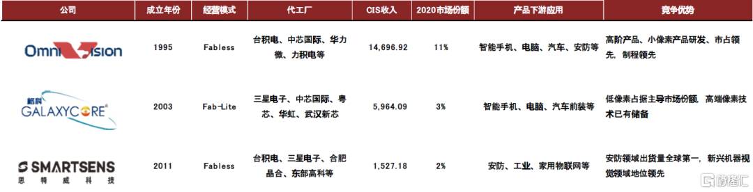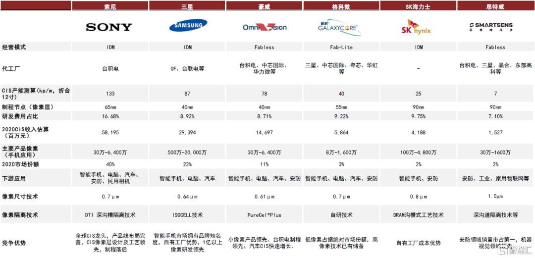 圖表5:主要CIS廠商情況對比