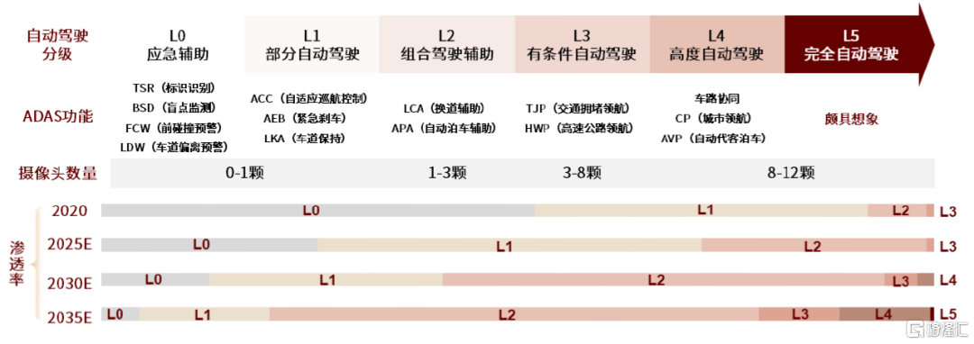 圖表22:自動駕駛等級提升帶動攝像頭數量增長