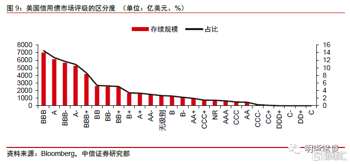 美國信用債等級區分度相對顯著,中高等級佔比並不高