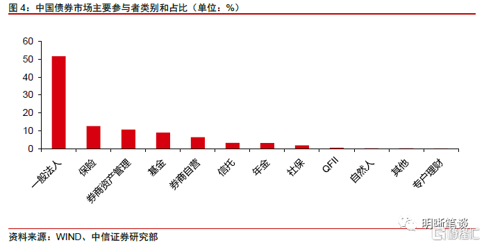 中國債券持有人主要是銀行和非銀機構,非銀機構包括保險、公募、券商