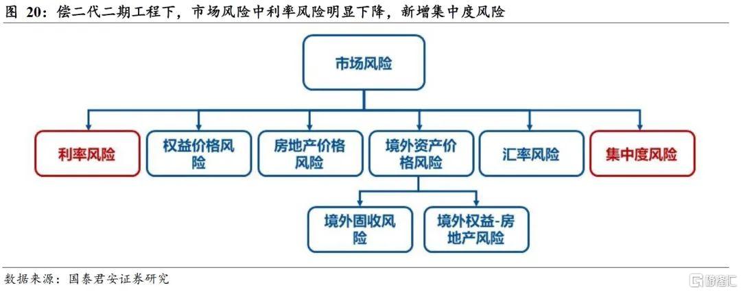 償二代二期工程新增集中度風險的最低資本計量,包括交易對手集中度風險、大類資產集中度風險和房地產集中度風險,對同一交易對手、大類資產及房地產過高的風險敞口給予一定的懲罰措施。