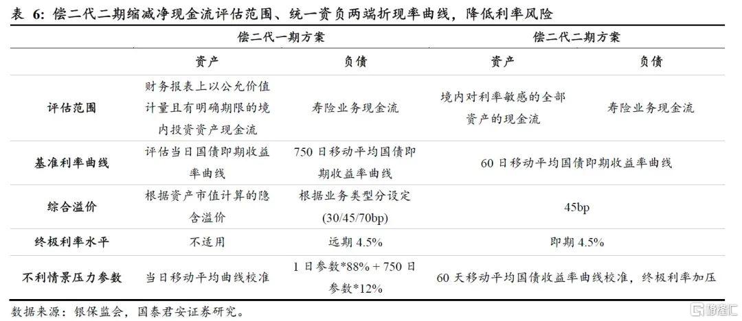 償二代二期通過縮減評估利率風險的淨現金流規模以及統一資負兩端利率曲線評估方式來降低壽險業務利率風險。