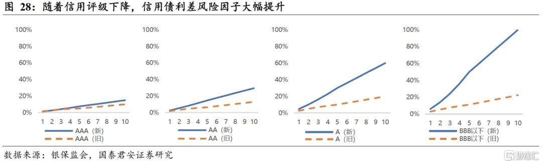 另一方面,償二代二期工程重點強調以風險爲導向計量信用風險的最低資本,預計保險公司爲控制信用風險將加大高信用等級的債券(如政策性債券、AAA級信用債等),同時控制同一交易對手、大類資產及房地產的風險敞口,避免集中度風險帶來的資本懲罰。