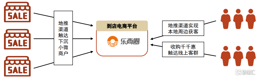 ► 到店電商業務:部分相對下沉的中小微商户由於交易規模小、營銷預算少、付費意願低,難以在中心化平台上獲得相對靠前的展示位、獲客效果較差、使市場出現一定的服務空白。數字經營服務商基於對商户需求的洞察,通過複用地推渠道來觸達商户,幫助商户設計並分發優惠券、吸引線下週邊客流。