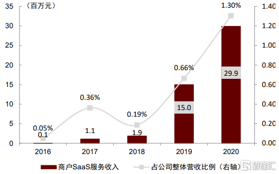 圖表17:移卡商户SaaS服務收入增長較快、但規模相對較小、未來仍需長期投入打磨產品並培育用户習慣