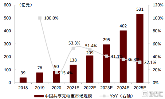 圖表20:中國共享充電寶市場規模2020-2025E CAGR~43%