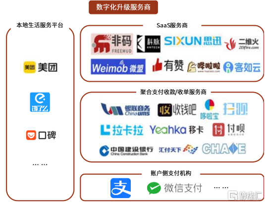 圖表9:我國線下中小微商家服務市場參與者主要包括互聯網平台/收單商/SaaS服務商等,主要集中於餐飲、零售及生活服務行業
