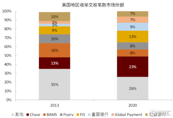 圖表32:美國TOP6收單交易金額市場份額維持在60%以上