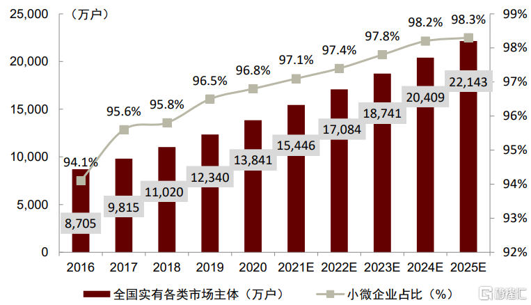 圖表6:我國小微企業佔全國實有各類市場主體比例持續上升、數字化服務空間廣闊