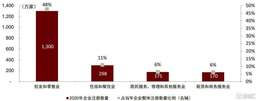 圖表8:2020年企業註冊數量中,批發和零售業、住宿和餐飲業佔比最大