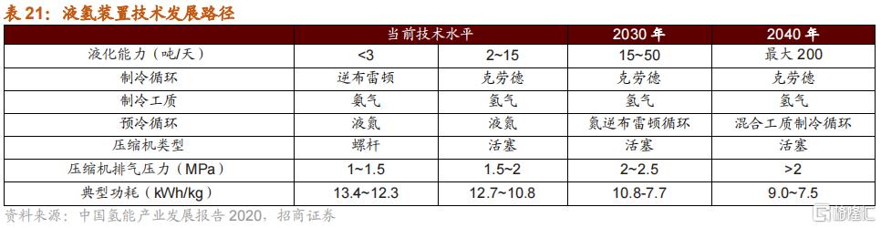(2)液氫儲運在長距離規模化氫儲運的成本優勢凸顯:中國現階段儲運氫普遍採用高壓氣態儲運,液氫儲運是未來的發展方向,液氫儲運技術的進步將使得液氫儲運成本持續下降,預期2050年液氫儲運成本下降至目前的50%。