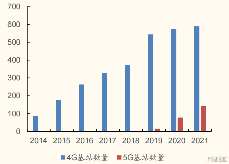 圖:三大運營商4G、5G基站存量統計(萬個)