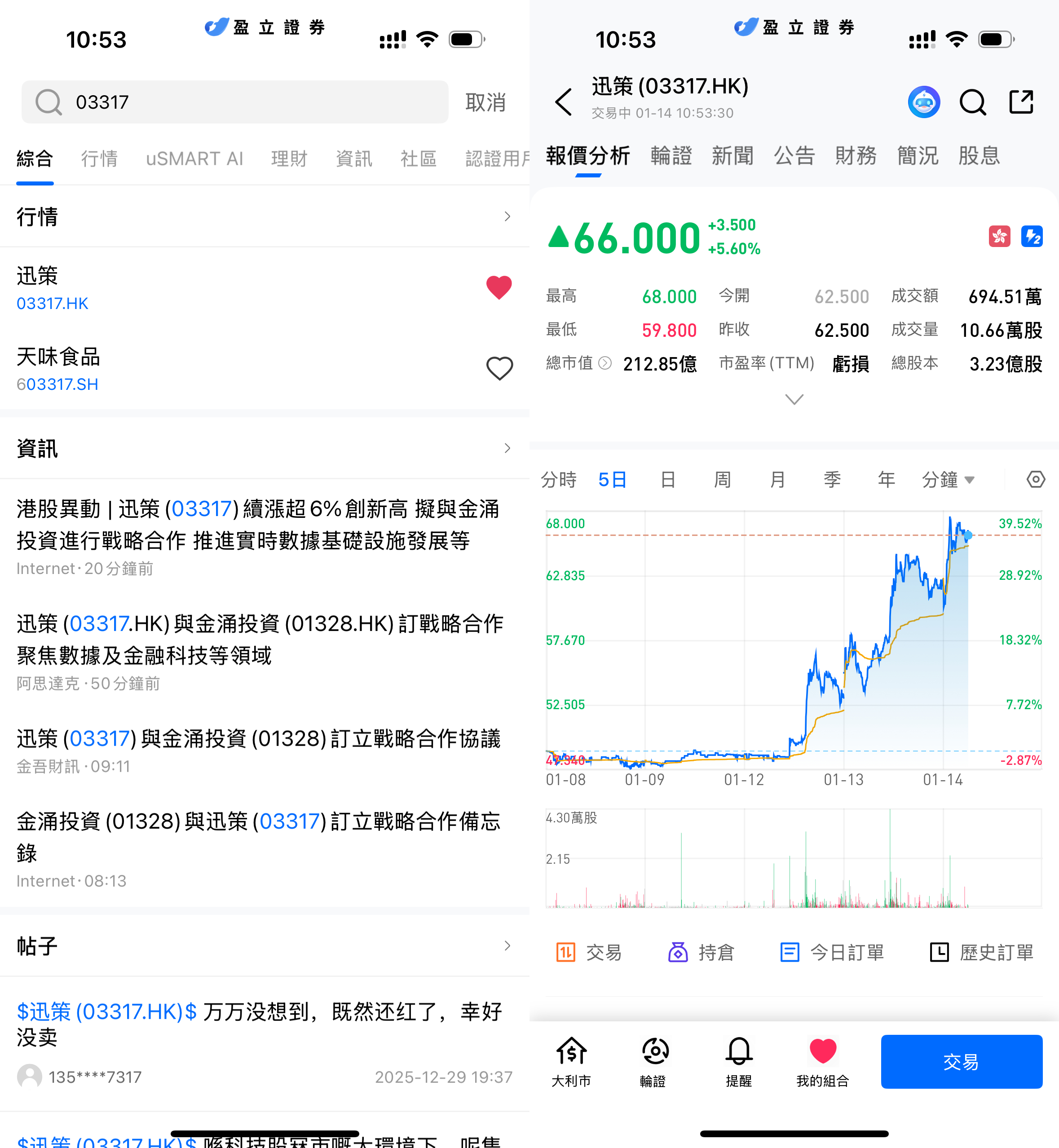 登入 uSMART HK APP 後,於頁面最右上方點擊「搜索」,輸入標的代碼(03317.HK)並進入詳情頁,瞭解交易詳情與歷史走勢。點擊右下角「交易」,選擇交易類型,最後填寫交易條件後送出訂單即可。
