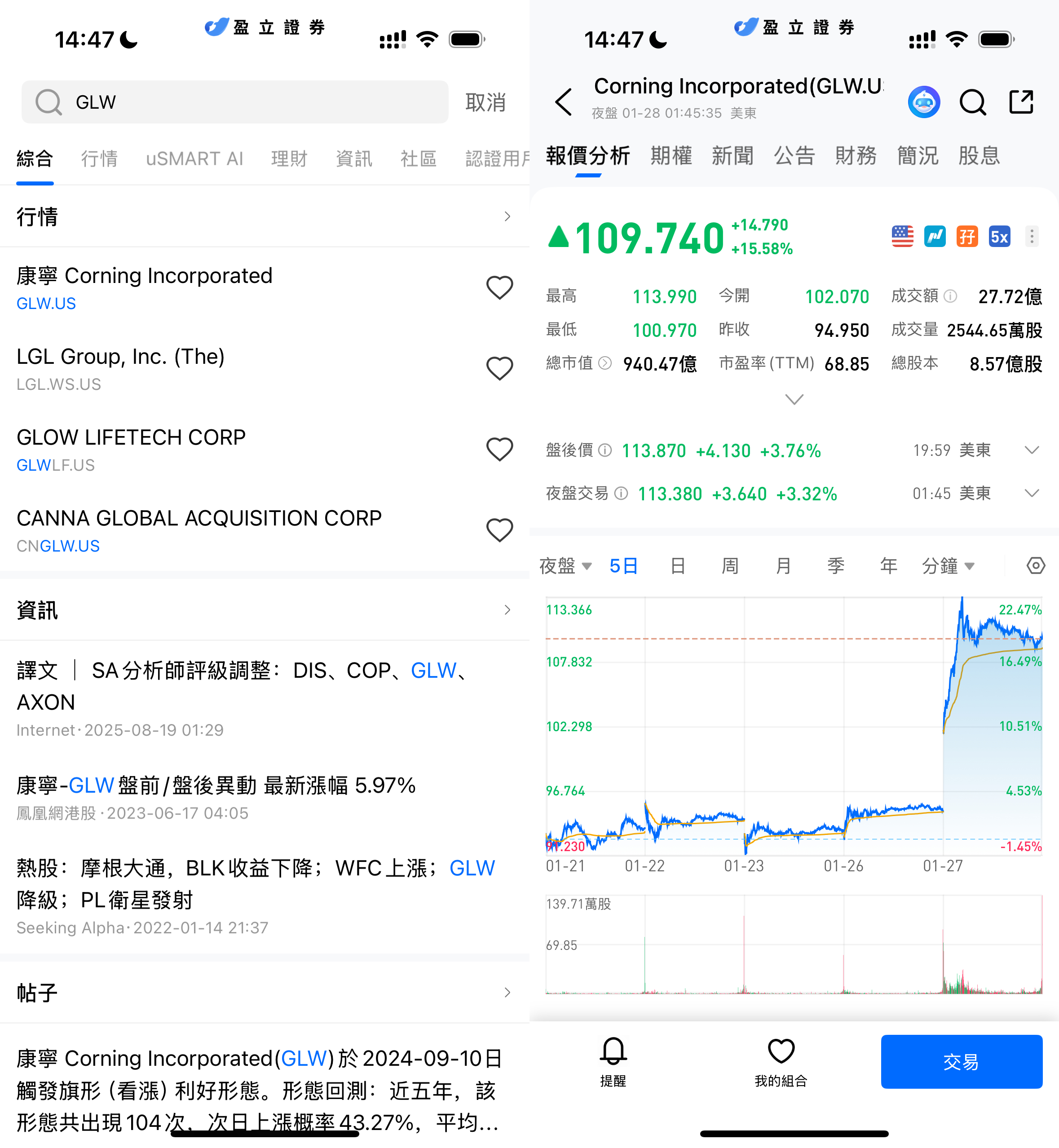 登入 uSMART HK APP 後,於頁面最右上方點擊「搜索」,輸入標的代碼(GLW.US)並進入詳情頁,瞭解交易詳情與歷史走勢。點擊右下角「交易」,選擇交易類型,最後填寫交易條件後送出訂單即可。