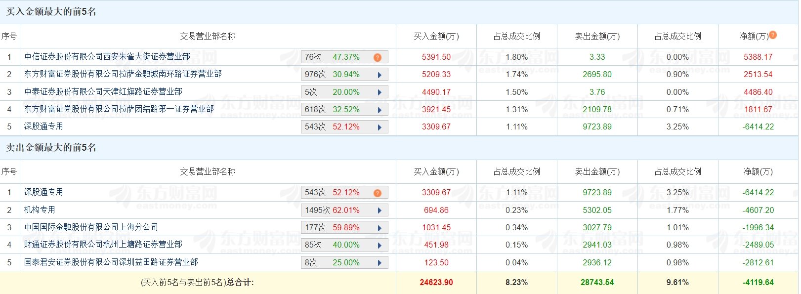龍虎榜丨萬豐奧威跌停 深股通淨賣出6414.22萬元